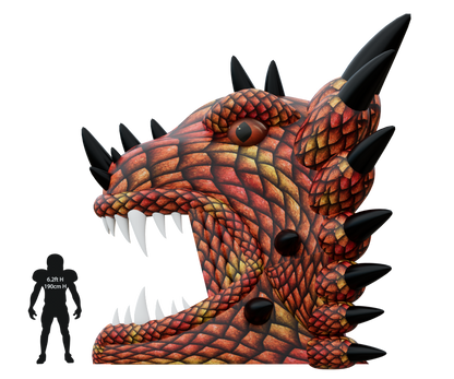 - Size: 18ft L x 18ft W x 18ft H for just the inflatable dragon head run through. We can add on a tunnel to the back of of the head for an additional cost. Contact us if you would like to go larger.