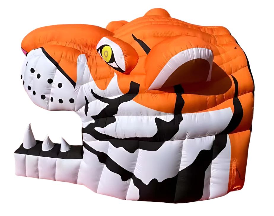 Fully custom made for your team with your mascot, colors and logo. Choose to order just an inflatable mascot head tunnel such as a tiger head, cougar head, lion head or have your mascot coming out of the top of a tunnel.