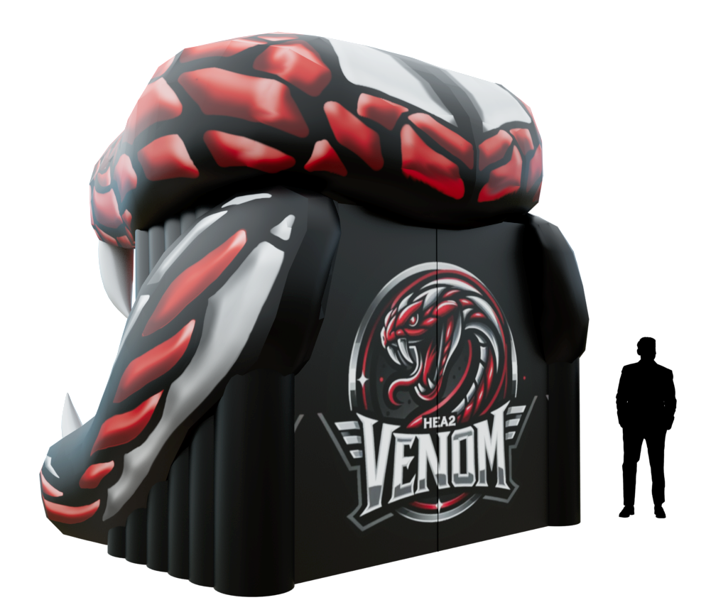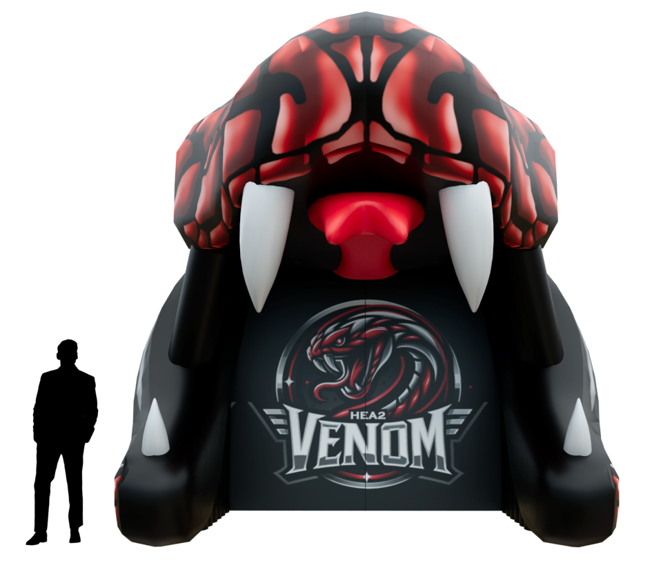 Are you looking for a custom inflatable snake head run through tunnel? We can customize a snake head mascot tunnel with your snake design, colors, branding and more.